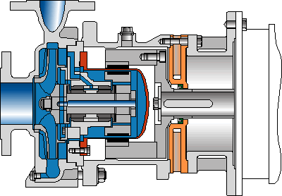 Klaus Union's SLM-AVB is a horizontal, sealless centrifugal pump with permanent magnetic coupling, compliant with ASME B73.3-2003, sealless pump standard for general emission-free services. The cost-effective close-coupled design provides a space-saving solution for zero-emission applications.